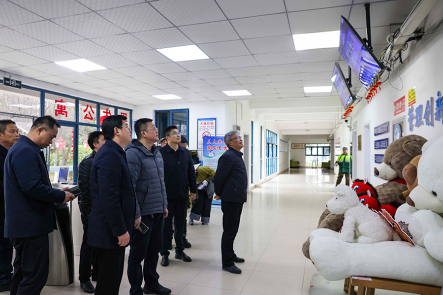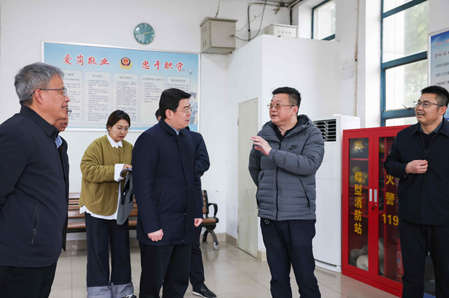 董胜一行深入门岗值班室、消防监控室、学生公寓、餐厅后厨和智能制造综合实训中心进行了实地检查,针对安防设施建设运行、安全保卫人员配备、重点岗位安全人员履职等问题进行调研并给予专业指导。在学校消防监控室他要求学校充分发挥各类安防设施效能,切实为师生筑牢安全屏障;在学生公寓他叮嘱学校要强化学生社区等重点领域的安全教育与管理;在学生餐厅他要求学校要严格落实食品安全主体责任,严把“进口”关,为师生提供安全放心的餐饮服务。他强调,学校安全无小事,学校各部门要紧盯关键人员,紧抓重点岗位,协同联动,闭环管理,确保学校安全稳定。